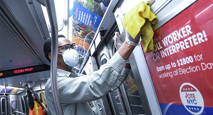 MTA NYC: disinfecting an R-160 train in the Coney Island Yard on March 3, 2020 | Wikimedia