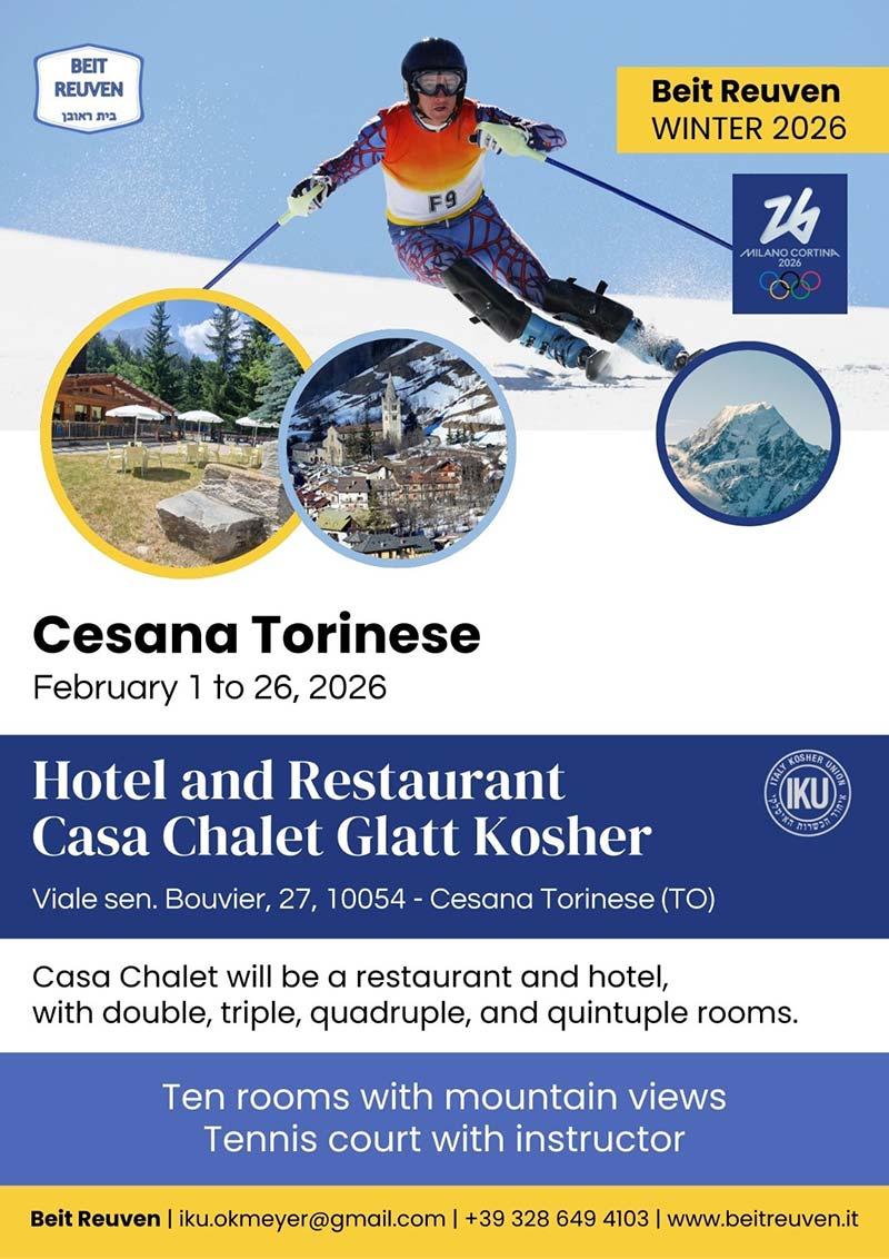 All meals are Kosher Lemehadrin, under the supervision of Rabbi Yitzchak Belinow, Shlit’a (Milan) and the Italy Kosher Union (IKU).